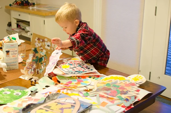 He dug through the pile and showed me various treasures he had created. He was especially interested in a few pieces - which means they are likely going in the keep pile. I thought it was awesome he found one of the first ones he "made" from his day care back in Houston. It was made from his handprints and he was holding it up to his hand seeing the size difference. Adorable!