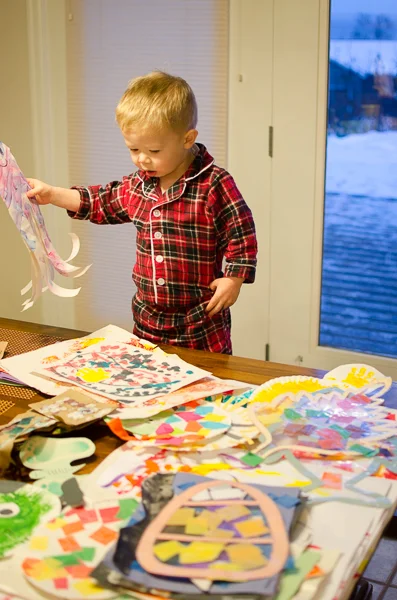 So I decided to try photographing them instead. I did my best to flatten everything out by piling it up and setting some weight on the top for a few days. It was moderately successful and today I took a stab at getting them all photographed. When I had them out on the table trying to remember what order they might have been created, Thomas wandered over and got super excited when he the pile and exclaimed "my artwork!"