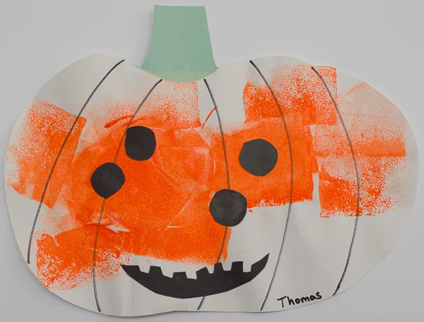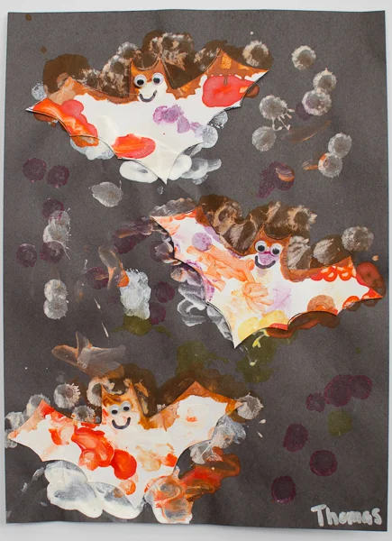 We had quite a bit of fall themed artwork and these bats were some of my favorites! So colorful for bats! I always wonder how much help he has on these projects. I think I can see more of his influence on the newer pieces compared to last year. Though I still don't think he has mastered getting the eyes on so neatly - I seriously doubt he did those...
