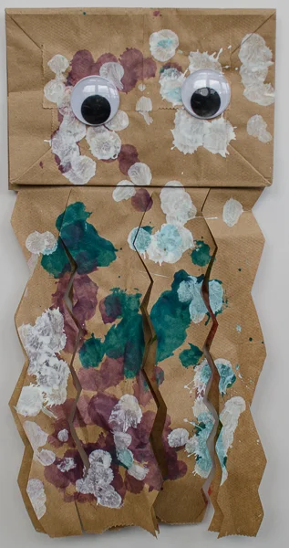 One of my favorites and one of two jellyfish he has in the stack. They both lost an eye (darn hot glue!), so they shared for their photo session. I should probably just go buy a pack of assorted googly eyes to have on hand for repairs!