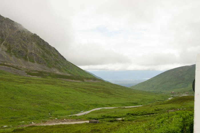 What about those awful storms that ruined our plans? They didn't show up until the middle of the night! I was so bummed. I figured we could try again today and the forecast still looked pretty bad. Well, it's Alaska - the forecast won't always be perfect. I decided we should attempt the Mine anyhow, if it sucked we would just drive back. We made it up to the Mine and the start (end?) of Hatcher Pass after stopping to eat at our favorite Mexican restaurant in Palmer.