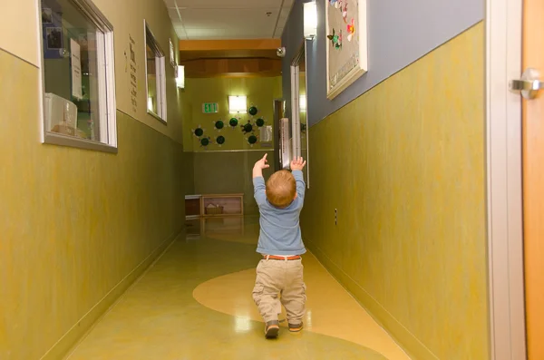 Now instead of being on the opposite side of a window, they are all the way down the hall from each other... Henry loves leading the way over to his brother, he doesn't even wait for me to catch up!