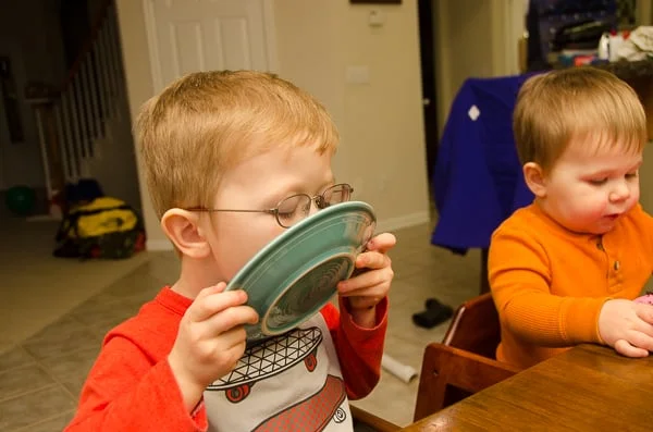 But don't think Thomas was any less excited about the cake. He finished it and Matt suggested he lick the plate. I don't think that it had ever occurred to Thomas to do this and he was completely on board with this method of frosting recovery. That plate was pretty darn clean when he was done.